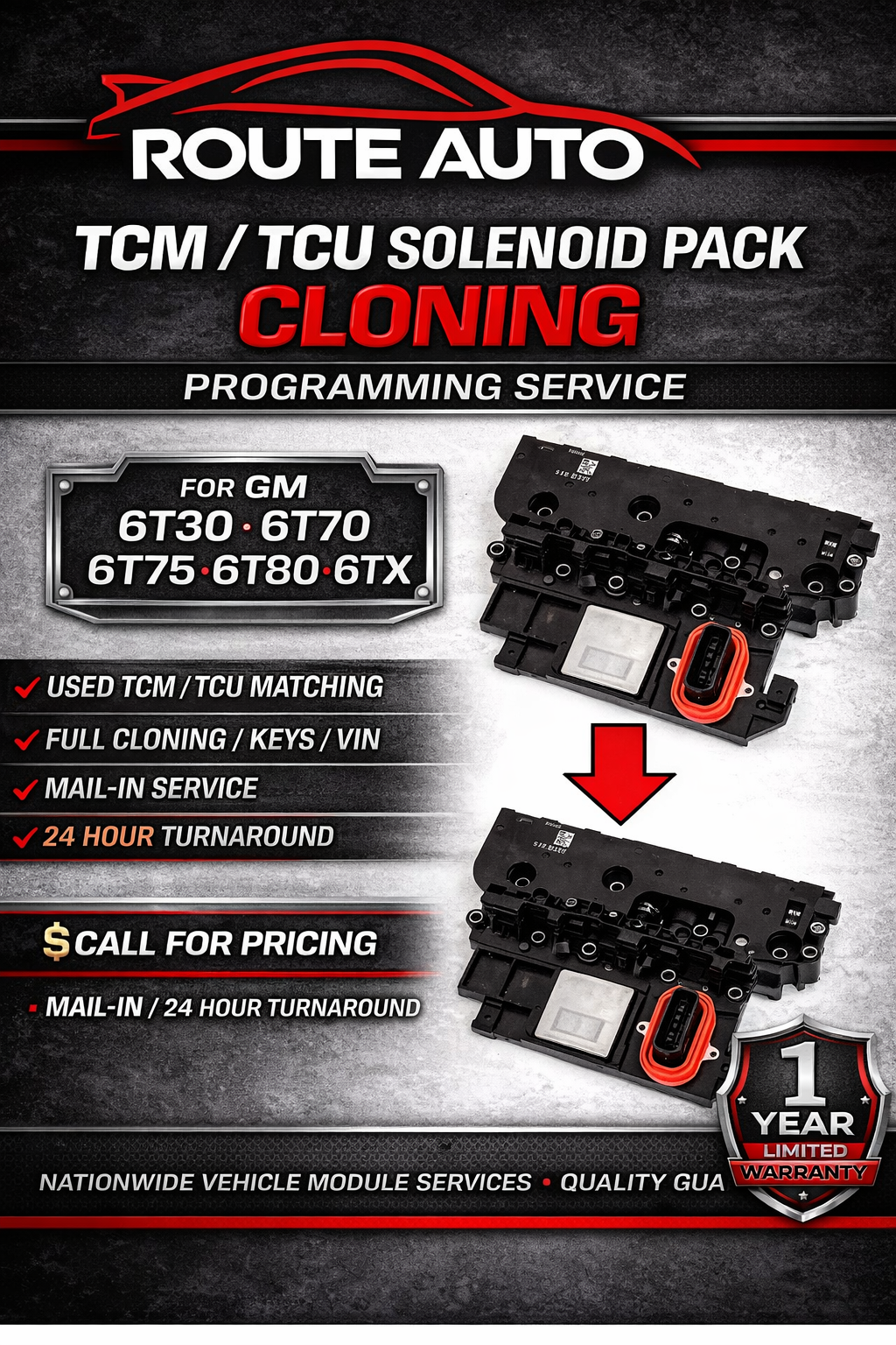 We provide professional bench-level TCM / TCU solenoid pack cloning and programming for GM 6-speed automatic transmissions. This service allows a used or replacement solenoid pack to be installed plug-and-play, without dealer replacement costs.